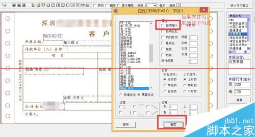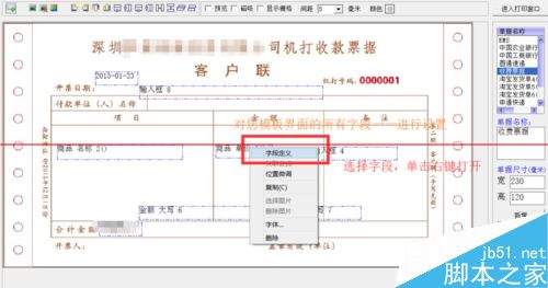 3.对您添加的打印字段全部进行一次自动缩小检查。具体操作为:选中字段,单击右键打开菜单,在菜单栏顶部选择“字段定义”选项,在弹出的设置框里将“自动缩小”选项前面的勾去掉,然后保存。