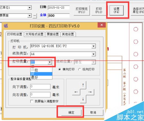 6.总结:我们来总结一下原理,win8.1系统顺应了现在高分辨率的屏幕发展趋势,所以分辨率会相对较高,四五打印助手软件主流用户都在winxp或者win7系统平台上,所以对于win8.1系统支持上会有一些细微差异。只要我们将软件“模板编辑界面的自定义字段”的自动缩小关闭,同时在打印界面将设置的“最好”质量换成“好”,这样打印分辨率就会适当降低,实现整体放大。