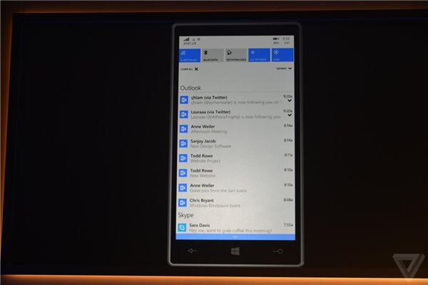 短信来了,可以直接在状态栏接通或者回复,快速便捷,微软追上安卓和iOS。