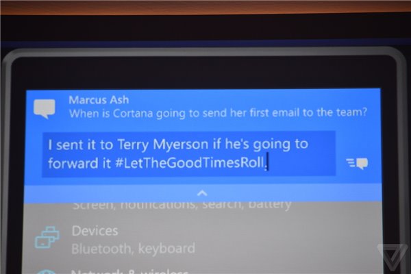 5、小娜Cortana正式启用。大家在之前的Win10预览版9901中,已经见过了小娜Cortana。不过大家还是很好奇,语音助手对于桌面PC到底有多大的意义。微软在本次发布会上,展示了其搜索、打开文件、展示照片甚至从商店中寻找应用等诸多功能,也可以使用语音唤醒。