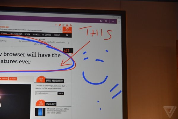 Surface Hub采用了Windows10操作系统,但是对超大屏幕进行了专门的优化,支持视频会议,也可以当作白板进行记录。