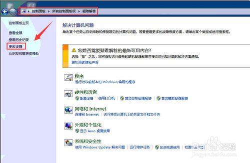 3、点击侧边栏的“更改设置”;
