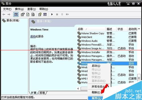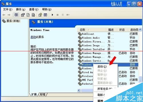 2、通常情况下,找到Windows Time服务,右键点击启动即可。