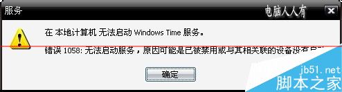 3、但是这个状态比较特殊,启动类型已经在自动上了,点击之后会弹出警告提示:在本地计算机无法启动Windows Time服务。错误1058:无法启动服务,原因可能是已被禁用或与其相关联的设备没有启动。