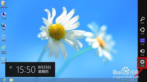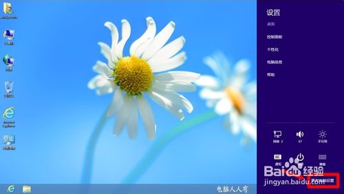 ②也能使用按 Win+C 组合键,调出Charm菜单→设置。
