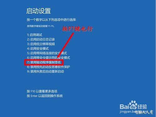 6、然后会来到这个设置界面,选择 禁用驱动程序强制签名 (或按F7键)重启电脑即可。