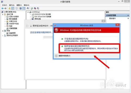 8、再测试驱动更新,就有选择菜单出现了,点选 始终安装此驱动程序软件 即可。