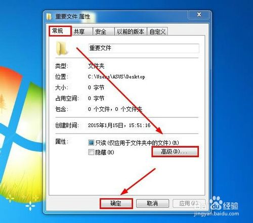 5、在文件“属性”下的“常规”标签栏中,选择“高级”选项。