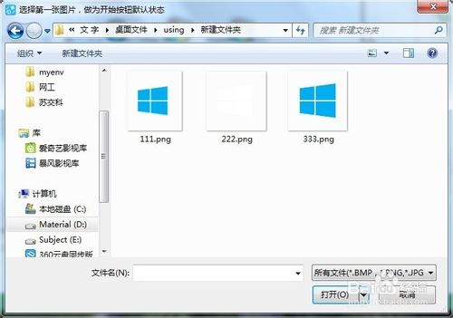 2、准备三张图片,大小是90*90左右像素。默认状态(1),鼠标移到开始按钮上状态(2),点击按钮后状态(3)。