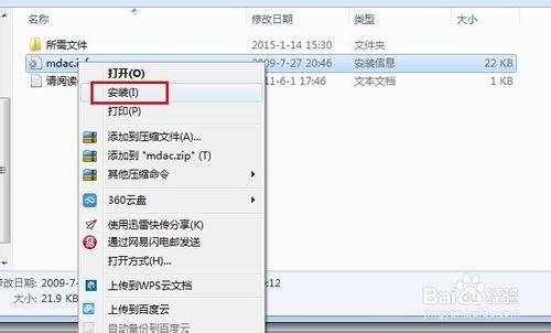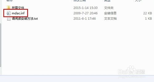 4、选择mdac.inf文件,鼠标右击选择“安装”。