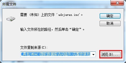 5、出现以下界面,再一次点击:浏览--所需文件--adcjavas.inc--打开--确认。进入到修复界面。