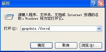 5、然后在运行框中输入“gpupdate /force”命令,单击“确定”来刷新策略