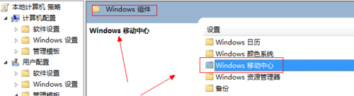 2、第二步:在用户配置-管理模板-windows组件-找到【windows移动中心】