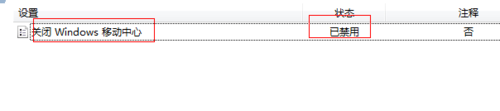 4、第四步:在里面可以看到【关闭windows移动中心】的设置,双击把它改成未配置或者禁用。