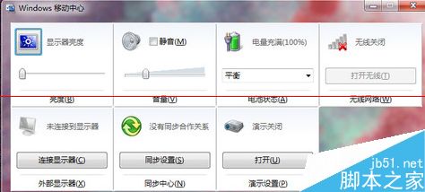 6、第六步:这样就能使用win+x启动windows移动中心了,在里面设置无线,电源或者屏幕亮度等设置了。