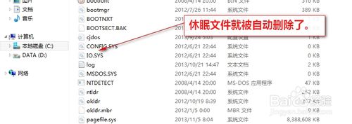 4、我们再回到系统磁盘根目录看看,发现休眠文件就被自动清除掉了。
