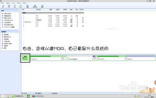 4、右击方框中的,选择从建MBR,自己看是什么系统的,然后从建,保存,退出