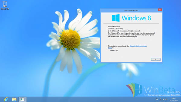 Windows8 Build 8888是一个特殊版本,因为它实际上可以作为Windows 8 RTM使用,它不会收到微软发送的任何更新或支持。微软员工本来已经将其选择成为Windows8 RTM,不过他们最终选择了Windows8 Build 9200作为RTM,因为Windows8 Build 8888有一个关键的错误。尽管如此,Windows8 Build 8888还是一个很好的圣诞礼物,Windows8 Build 8888当中不包含任何Modern UI应用程序,并且版本是英文。