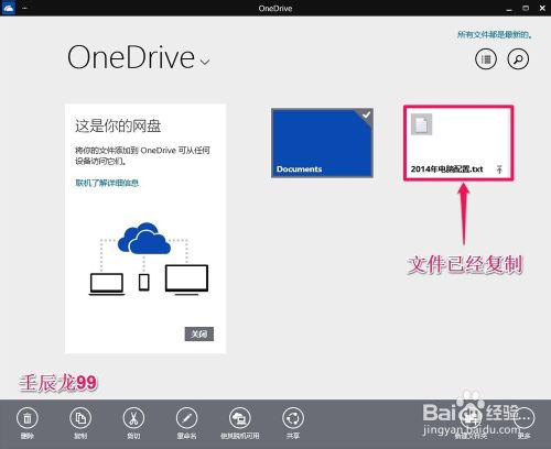 9、点击:复制到OneDrive后,我们可以看到文件已经复制到OneDrive工具中;