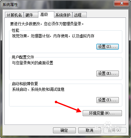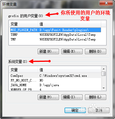 环境变量窗口。在环境变量窗口中一般有两个变量,一个是你当前所使用的用户独有的环境变量,另一个是所有用户都可以访问的系统变量。其实如果在你的电脑上你只使用一个用户的话,那么不管你修改的用户的环境变量还是系统变量,效果都是一样的。为了以防未来会新建其他用户,那么我建议你修改系统变量而不是某个用户独有的环境变量。