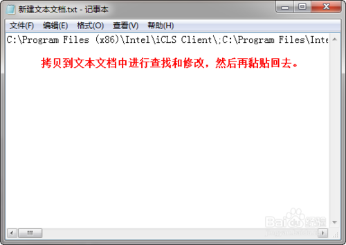 如何修改?如果觉得在编辑系统变量的窗口中不好做修改的话,也可以把path的内容拷贝到文本文档中进行查找和修改,然后再黏贴回去。