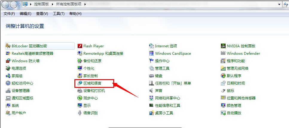 3、在控制面板页选择“区域和语言”点击打开,如下图: