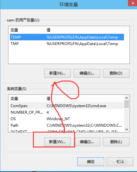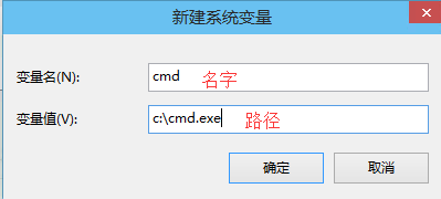 8、输入环境变量信息名称:路径:都很重要;必须要输入的输入之后记得点击确定
