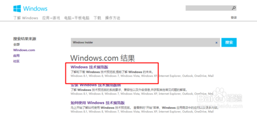 2、由于经验加链接提交会出现问题,那么我告知客户如何搜索找到。因为必须先加入Windows Insider计划才能够下载。我们在界面右上角的搜索框中输入“Windows Insider”
