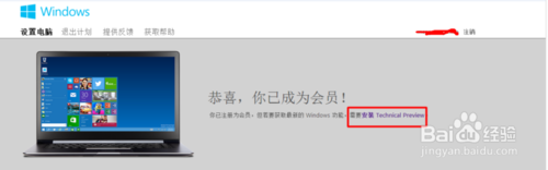 8、接着他会弹出“恭喜你,你以成为会员”,我们点击“Tchnical Preview”