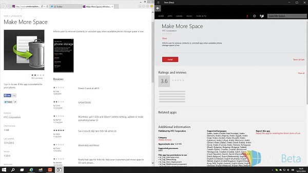 甚至包括HTC的“Make More Space”在内的HTC WP独家应用都已登录Windows 10 build 9901的Windows Store。