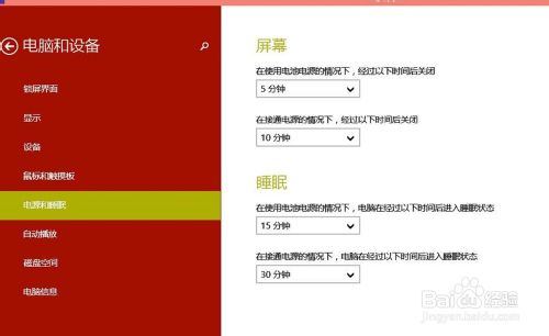 4、在win10的”电源和睡眠“设置界面,我们可以对win10系统屏幕灭屏时间、睡眠延迟时间进行设置了。做到对电脑电源系统的保护,节能。