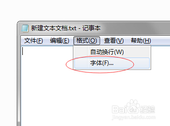 3、在弹出的文本文档窗口中上方菜单栏中找到并点击【格式】-【字体】子菜单