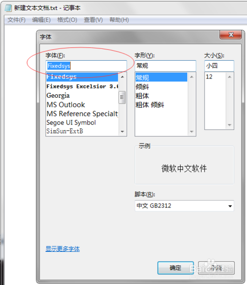 5、如果喜欢怀旧的用户可以选择:Fixedsys 字体,此字体是winXP和win2003中记事本的默认字体。