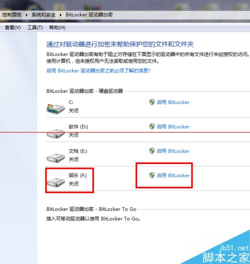 5、选择你需要加密的磁盘,比如F盘,”娱乐盘“以后私密的内容放到这个盘里面就可以了。