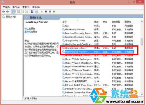 2、在本地服务列表中找到两个服务【HomeGroup Listener】和【HomeGroup Provider】两个服务,如下图: