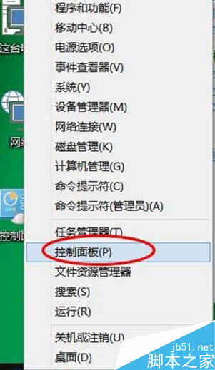 win10设置开机密码 在win10系统桌面,右击“开始”菜单 ,点击“控制面板”。如下图。