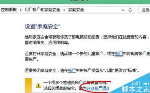 然后点击“用户账户和家庭安全”——“为用户设置家庭安全”。
