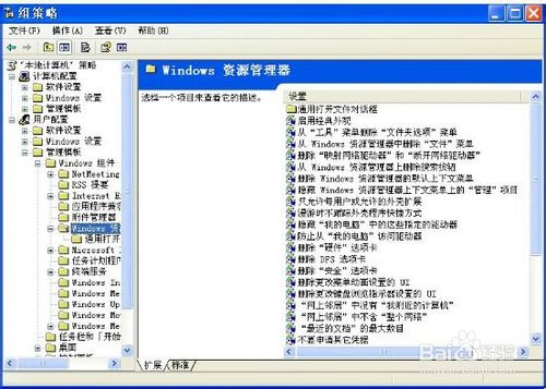 4、 在组策略编辑器中依次进入"用户配置→Windows组件→Windows资源管理器"。