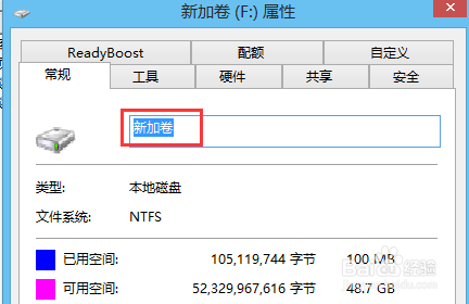 6、如果觉得有个“新加卷”看着别扭的话,可以根据下图把“新加卷”三个字删除,点击确定即可。