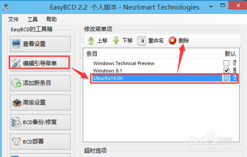 7、打开easyBCD,根据下图进行设置,记得设置完后点击“保存设置”。