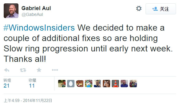 但现在,事情又有了新的变化。Gabriel Aul又在Twitter上表示,由于该版本还存在一些问题需要修复,所以会推迟到下周再推送。