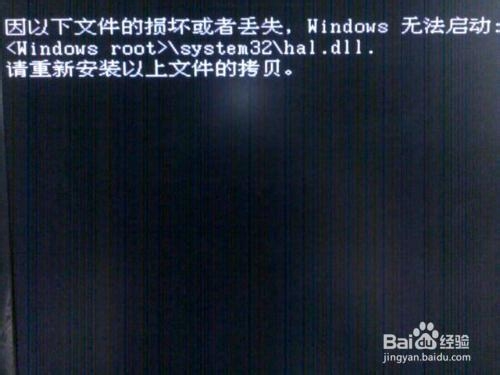 2、出现这个错误的原因关键是boot.ini文件出错,导致引导不了电脑从指定的路径启动,那样系统会搜索其他的路径,而其他路径不存在或根本就没有hal.dll文件,所以就会提示这个错误。