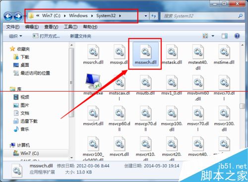 3、解压文件到桌面,将文件夹中的MSSWCH.dll 复制粘贴到 C盘中的System32文件夹下。