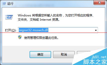 5、如果说你的电脑还是无法启动,试试在运行框输入 regsvr32 msswch.dll,运行即可。