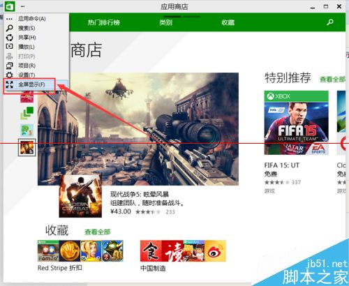 4、选择最下面的“全屏显示”,该应用即全屏显示