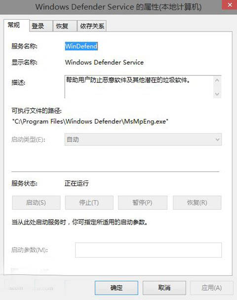 经过查询后我们可以看到,该服务所对应的应用程序路径为“C:Program FilesWindows DefenderMsMpEng.exe”,也无法通过点击启动来开启该服务,或者点击后显示运行,但仍不能正常使用,错误依旧。