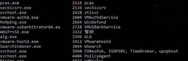 ▼在“Windows Defender Service”服务项正常的电脑中,我们通过在命令提示符下使用“tasklist /svc”命令,查看服务以及程序对应项情况如下。其服务PID进程号为2664,对应的正是“MsMpEng.exe”文件。