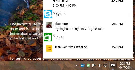 在版本号为9860的Windows 10预览版关闭窗口显得比较突兀,所以在新版中微软强化了这个关窗口的动画特效,让整体看上去更加的流畅。此外在新版中也已经修复了9860中淡入淡出的BUG,所以整个窗口的操作过渡非常清晰简洁。通知中心同样也迎来了一些改变,比如位于任务栏靠近托盘时钟的通知中心按钮,在未来它可以根据用户的需求进行自行移动,但是目前尚不确定是会否会出现在下个预览版本中。谢谢阅读,希望能帮到大家,请继续关注脚本之家,我们会努力分享更多优秀的文章。