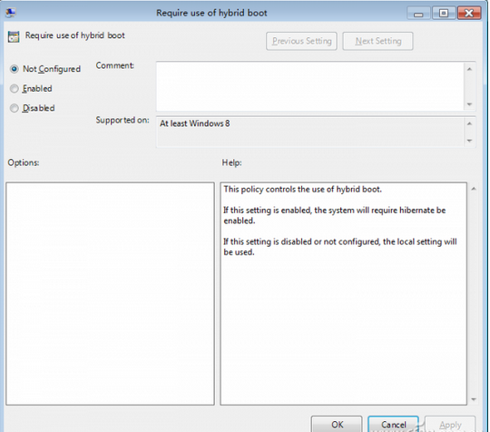 打开“运行”对话框,输入“gpedit.msc”,执行后会进入本地组策略编辑模式,依次选择“Computer Configuration→Administrative Templates→System→Shutdown”,在右侧窗格双击“Require use of hybrid boot”。