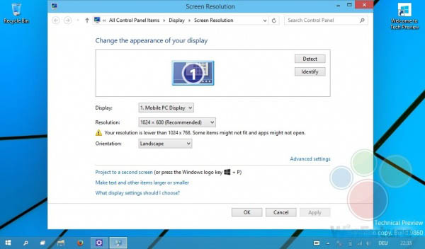 系统的更迭往往会对分辨率进行限定并呈现两极化的发展趋势,高端和专业用户要求系统支持4K或更高分辨率,而低端用户希望在入门设备上运行的分辨率更低。最新发现Windows 10系统能够在更低分辨率设备上运行,德国老牌科技媒体WinFuture经过测试,最新版本号为9860的Windows 10预览版能够在分辨率为1024*600的三星N150上网本上运行,而此前Windows 8系统的最低要求为1024*768,尽管如此微软表示在低分辨率下运行可能会出现各种问题。